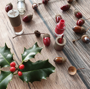 Choisissez les plus jolis, enlever les chapeaux, vernissez les avec de jolies couleurs : rouge, doré, pailletté ... & replacez les petits chapeaux ! Ensuite, vous pouvez passer un petit fil pour en faire des boules ou bien les ajouter à votre décoration habituelle. Vous les avons mis sous la cloche lumineuse (Photo 3).